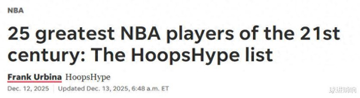 库里第5名!在新赛季开打25场比赛后,美媒《hoopshype》适时更新公布21世纪25大巨星名单,其中哈登12杜兰特4,科比屈居第二。